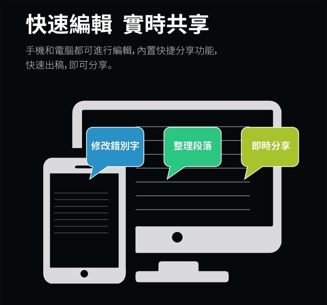 智能編輯,快速實時分享採訪、會議、日記和教學。