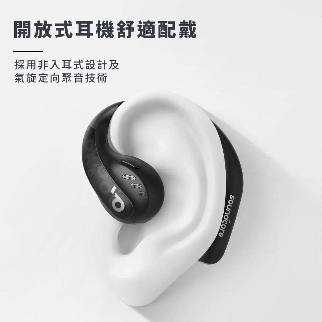 使用非入耳的開放式設計,配合氣動傳聲技術,配合讓你長久配戴也能舒適使用,不受耳壓拘束,自然傾聽外界聲音。