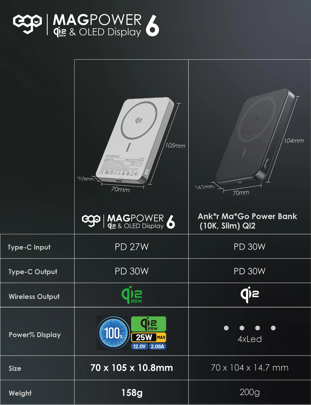1. QI2.2 認證,支援25W超快無線充, 30分鐘充60%電